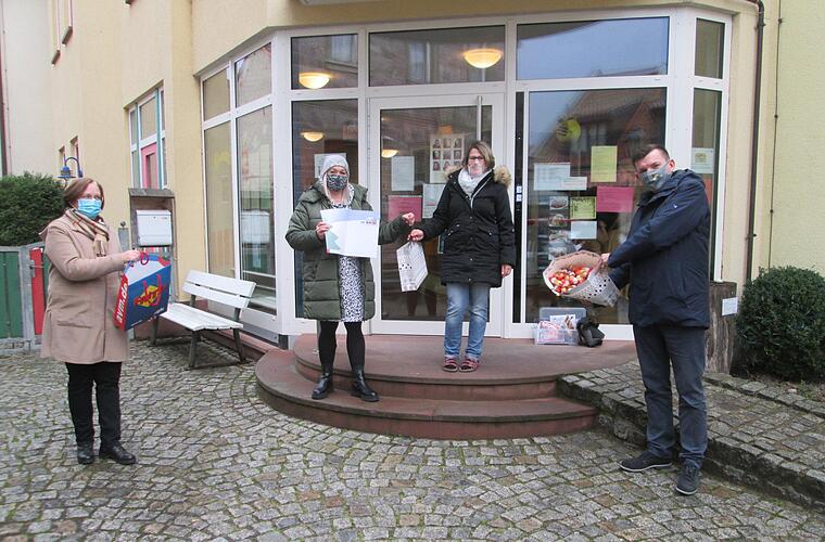 Die Delegation aus Bürgermeister und Stadtwerke-Angestellten hatte gut zu tun mit dem Besuch von insgesamt acht Kindergärten, denen sie ihre Nikolaus-Tüten vorbeibrachten, mit insgesamt 700 Schoko-Weihnachtsmännern und den Malunterlagen.