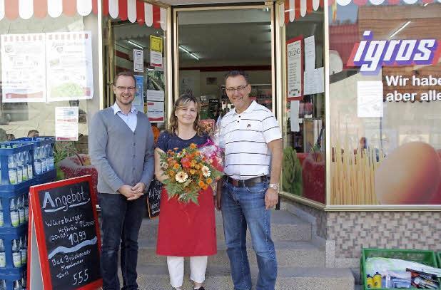 Zum ersten Jahrestag überbrachte auch Igros-Repräsentant Heiko Vöth die Grüße der Handelskettenbesitzerin, der Familie Graf, und seine persönlichen Glückwünsche. Sein Dank galt dem Engagement von Gülin Zeisberg, die zudem eine Postannahmestelle, eine Reinigungsfirma und ein kleines Café einrichtete, sowie dem Auraer Aktion-Kreis für die erwiesene Unterstützung.