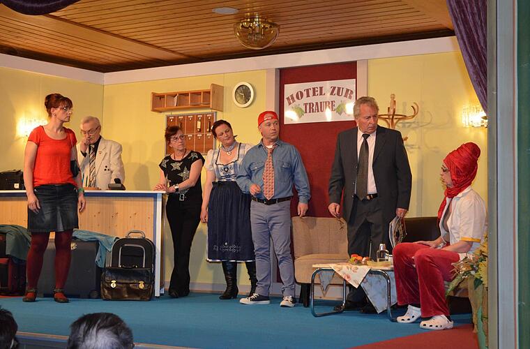 Unter der Leitung von Heinz Thürmer hatten die Laiendarsteller bereits im vergangen Herbst begonnen, das Stück einzustudieren. Gisbert Stöber überzeugte in seiner Rolle als Hotelbesitzer Martin ebenso wie Armin Greubel als Bürgermeister Hannes, der unbedingt dafür sorgen will, dass der kleine Ort zukünftig zum Veranstaltungsort musikalischer Events wird.