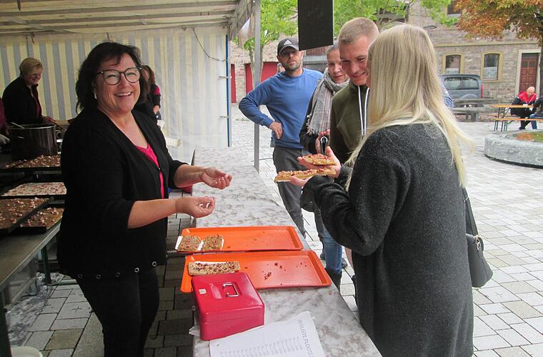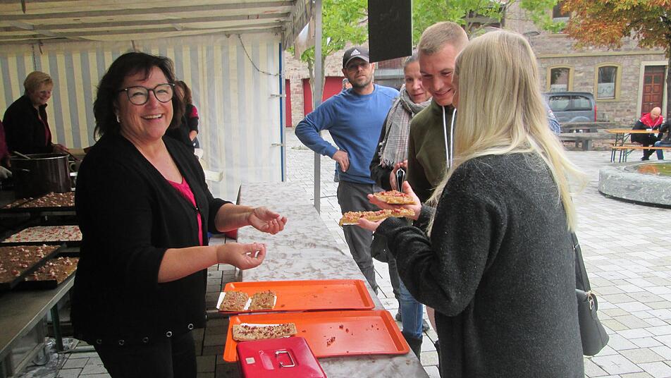 Der Obererthaler Plootz-Backofen machte diesmal auf dem Viehmarkt Station. Zwiefelplootz und Federweißer hießen die Dauerbrenner, vor denen sich zahlreiche Schmankerl-Fans trafen. Einen solchen Snack kann man auch unter einem Vordach oder einem belaubten Baum genießen - oder nach Hause tragen. Die Plootzbäcker-Gruppe aus dem Stadtteil hatte jedenfalls alle Hände voll zu tun. Knapp 200 Bleche gingen über den Verkaufstresen, 4,5 Zentner Zwiebeln und nahezu 20 Kilogramm Schinkenspeck wurden in den beiden Markttagen verarbeitet.