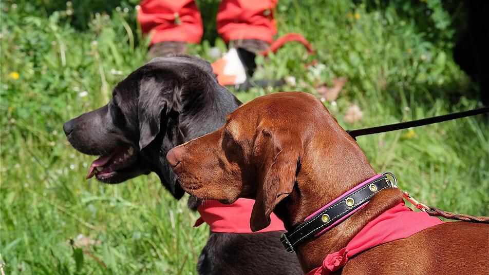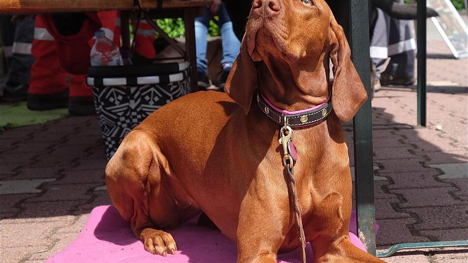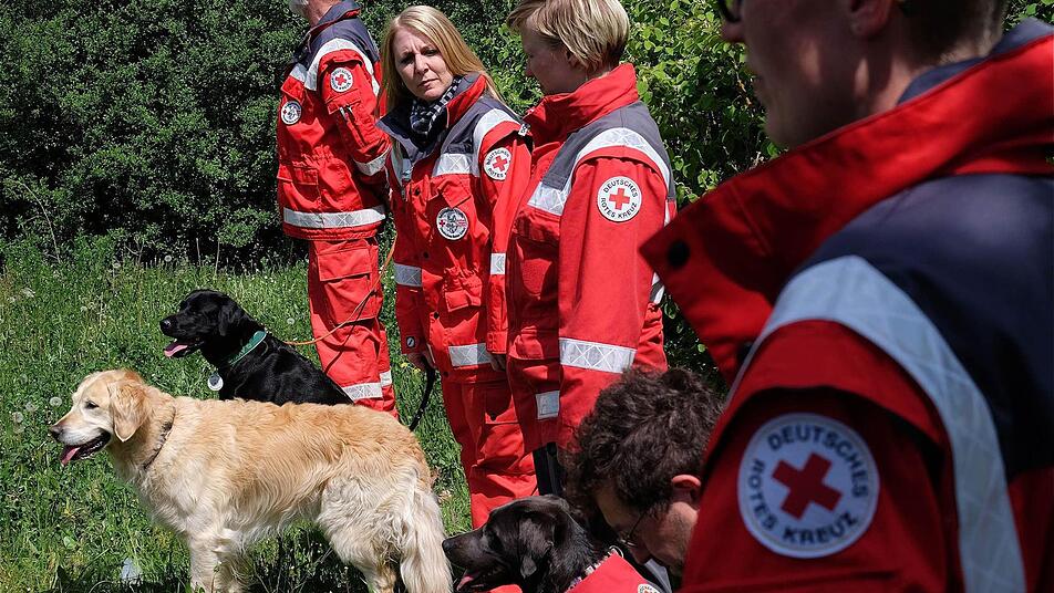 Vermisstensuche mit Hund Keine Sorgen hat wohl die Staffel der Rettungshunde, die mit ihrer Vorführung beeindruckte. Leiterin Melanie Dittmayer erklärte, wie die speziell ausge bildeten Hunde vermisste Personen auf offener Fläche auffinden. Schnelleinsatzgruppen-Leiter Stefan Fella von der Wasserwacht erzählte: "Auf dem Alarmplan stehen jetzt 18 Leute. Unser Einsatz geht manchmal über die Landkreisgrenze Bad Kissingen hinaus. So zum Beispiel nach Weickersgrüben oder Arnstein, koordiniert über die Leitstelle." Die Wasserwacht zähle etwa 400 Mitglieder, wovon rund 30 aktiv seien.