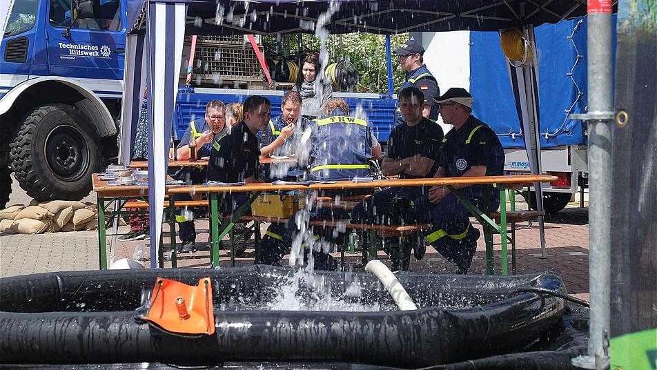 Sebastian Sebald vom Ortsverband des Technischen Hilfswerkes Bad Kissingen und Zugführer Dominik Pfister präsentierten die Superpumpen, mit denen zum Beispiel beim Hochwasser enorme Pumpleistungen erzeugt werden können. "Das sind bei uns 12 000 Liter Schmutzwasser in der Minute statt der üblichen 400 bis 800 Liter bei der Feuerwehr", sagt Sebald. Das THW sei keine Konkurrenz zu den Feuerwehren, sondern eine gute Ergänzung, betonte Pfister.