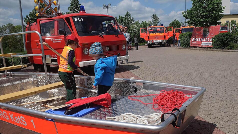 Die Feuerwehr Hammelburg, das Bayerische Rote Kreuz, die Polizei und das Technische Hilfswerk (THW) haben sich gemeinsam beim Blaulichttag präsentiert. Besonders die Jugend zeigte großes Interesse für diese Premiere.