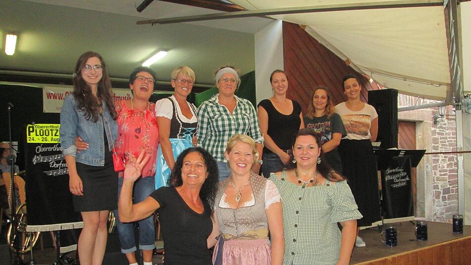 Denn nun kamen die Damen zum Zug. Sie mussten einen mit Wasser gefüllten, gläsernen Bierkrug so lange wie möglich mit ausgestrecktem Arm stemmen. Die zehn Bewerberinnen Larissa Lehmann, Stadträtin Gaby Ebert, Lara Oppel, Claudia Hussong, Bürgermeister-Gattin Sonja Kickuth, Gemeinderätin Christine Neeb-Wittmann, Michaela Baier, Lilly Uebel, Tina von Mörs und Franziska Bigos, bekamen vorab anhaltenden Beifall. Eine Minute hielten alle mit. Bei eineinhalb Minuten traten die ersten Wackler ein, die Gesichter der Damen wurden etwas verbissen. Danach sanken peu à peu die Arme. Als die Uhr drei Minuten zeigte, kämpften noch drei Teilnehmerinnen um den Sieg. Claudia Hussong stieg bei 3,06 Minuten aus, Tina von Mörs bei 3,11 und die Siegerin, Larissa Lehmann, bei 3,16 Minuten. Für alle gab es Applaus und für die drei Ersten einen Gutschein.
