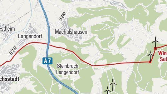 "Bauvorbereitende Maßnahmen am Standort wie die Rodung des Geländes, die Herstellung der Kranstell- und Wegeflächen sowie der Fundamentaushub sind bereits abgeschlossen", fasst die Enercon-Sprecherin den aktuellen Stand zusammen. Die Kabeltrasse führt vom Umspannwerk Fuchsstadt durch die Gemarkungen Fuchsstadt, Langendorf, Machtilshausen und Sulzthal zum Windpark.
