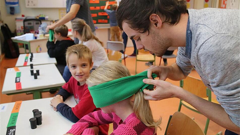 Fühlen, hören, sehen, schmecken und riechen: Beim Projekt-Seminar "Wunderbare Welt der Sinne" boten die Zwölftklässler des Hammelburger Frobenius-Gymnasiums den Saaletal-Schülern elementare Erlebnisse für aller Sinne.
