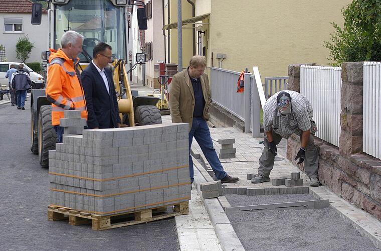 Beim Ortstermin mit Baudirektor Jürgen Eisentraut vom Amt für Ländliche Entwicklung (ALE), dem Vertreter des Architektenbüro ABM, Frank Salomon, sowie dem Verantwortlichen der ausführenden Baufirma Josef Hell wies der Bürgermeister darauf hin, dass selbstredend auch alles "im Untergrund Erforderliche, wie das Wassernetz, die Kanal- und Gasanbindungen, in die Maßnahme eingeschlossen sind".