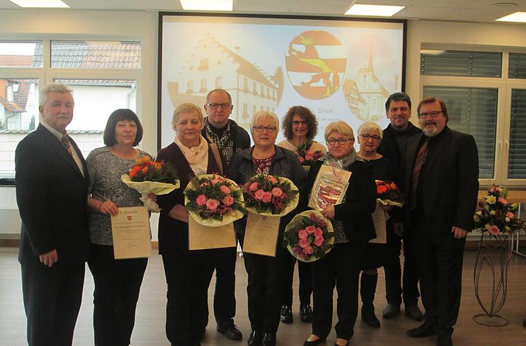 Nach seinem Dafürhalten gelang es den verschiedenen, zur Wahl anstehenden Gruppierungen, einen "ausgewogenen Kandidaten-Querschnitt in der Bürgerschaft zu gewinnen. Der Bereitschaft der Bewerber, Verantwortung zu übernehmen, zolle ich Respekt". Sein Ratschlag an die künftigen Mandatsträger: Nur gemeinsam kann man vieles auf den Weg bringen. Stellvertretend für alle Ehrenamtlichen würdigte der Bürgermeister Brigitte Niessner, Elfriede Heilmann, Edeltraud Stöth, Margot Lukaschewitsch und Alfred Stöth mit der Urkunde und einem Präsent. Die Genannten bringen sich seit Jahren in vorbildlicher Weise in die Seniorenarbeit ein.
