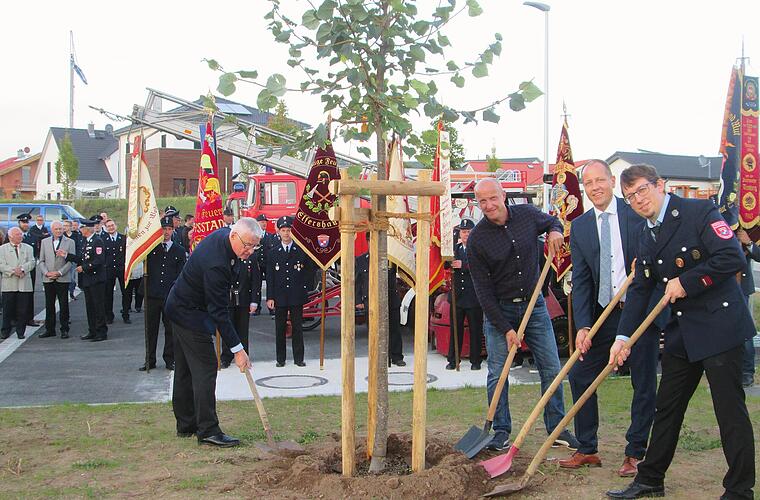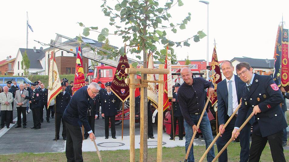 Eingangs spendete und pflanzte der Verein für Gartenkultur und Landespflege Elfershausen eine Winterlinde neben dem Fahrzeug- und Geräteplatz, die Vorsitzender René Teich mit Grüßen überbrachte.