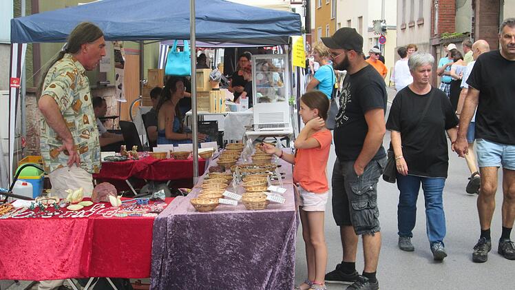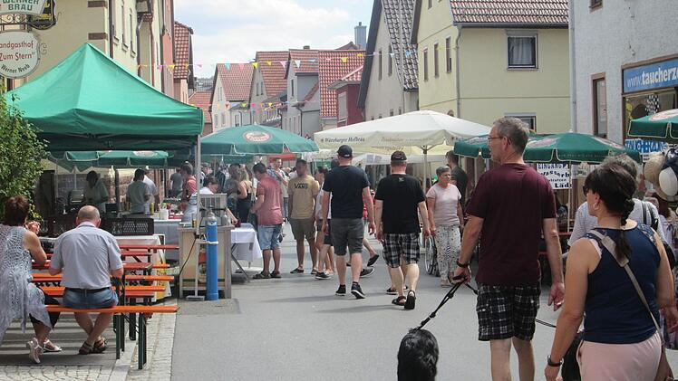 Der FC und der Karnevalsverein Blau-Weiß warteten im Schlosshof mit Snacks und Kaffee und Kuchen auf, der Landgasthof "Stern" mit fränkischen und australischen Spezialitäten. Die Häcker-Wirtschaft des Weinguts Hümmler lockte mit dem Hochzeitsessen und Kuchen.