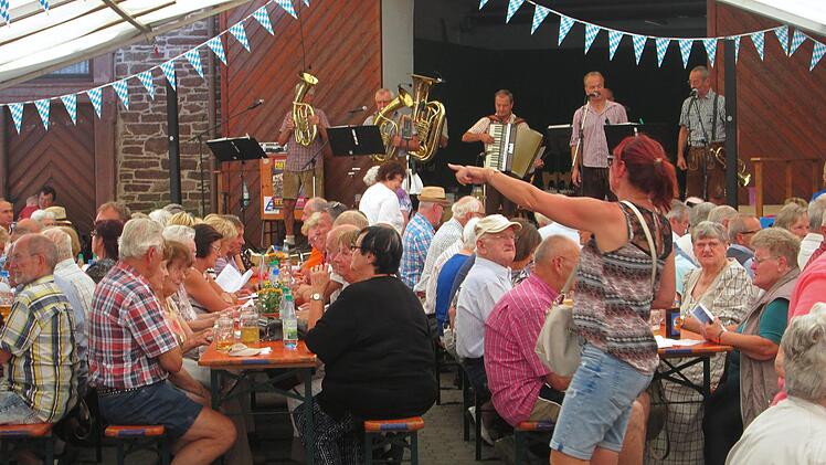 Zum letzten Marktfest-Sonntag vor dem Jubiläumsjahr herrschte Andrang im Schlosshof, mit einem bis auf den letzten Platz besetzten Festzelt. In der Dom-und August-Ullrich-Straße war der Besucherstrom hingegen überschaubar. Das lag wohl an den "Rucksack-Musikanten" im Festzelt, die von den Heimischen gerne gehört und gebucht werden. Denn zum Saalemusicum spielten sie bereits mehrfach in Elfershausen auf.