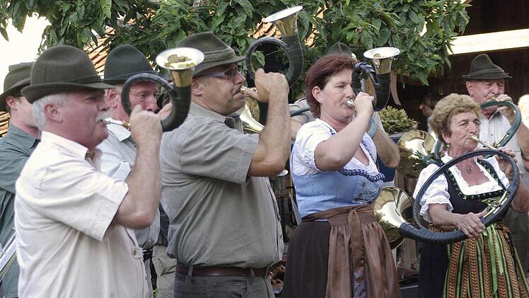 Insbesondere das Auftreten der Jagdhornbläser die mit Jagdsignalen und weidmännischen Musikstücken unterhielten, bedeutete eine Rarität, da sich die Bläsergruppe aufgelöst hatte. "Wir hatten noch 12 Bläser in Machtilshausen und haben die Versprengten mit aufgelesen und daraus ein neues Ensemble gebildet", informierte Sprecher Gerhard Vollmuth, der auch die Moderation der Bläser unter Betreuer und Jagdmeister Achim Reinhard übernahm. Die Jagdhornbläser proben in der Alten Schule von Machtilshausen.