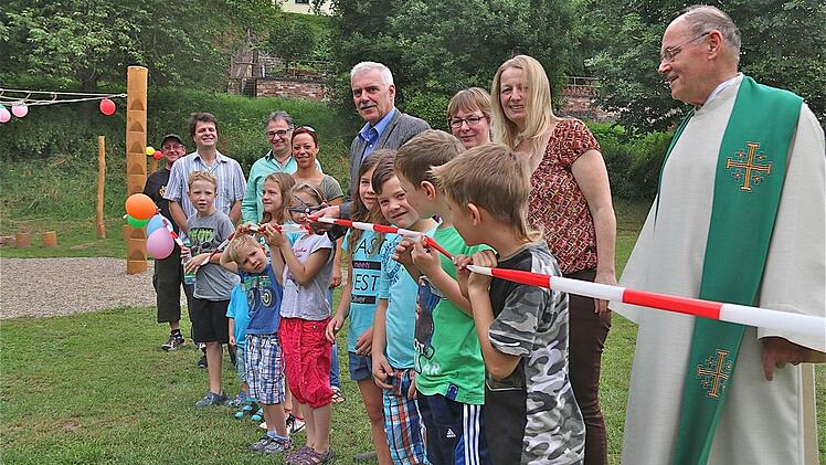 Pfarrer Zwickel segnete den Spielplatz und sprach ihm die "Kräftigung der körperlichen Gesundheit, die Pflege der Gemeinschaft und natürlich eine Menge Freude" zu. Er freute sich auch über die kurze Distanz zwischen Spielplatz und Kirche: "Gott wird dies gefallen." Den Kindern sollte das Spielen gegönnt sein, bevor sie vom Leistungsdenken der Gesellschaft gefordert werden. "Die Kinder fühlen sich in der Naturnähe wohl", weiß Susanne Siebenlist. Zusammen mit den beteiligten Müttern, darunter vor allem Iris Betz, sei sie bei der Planung auf so ziemlich alle Wünsche eingegangen. Diese reichten von der Naturnähe am Hang bis hin zur Bitte der Eltern, ihre Kinder vom Feuerwehrhaus aus im Auge behalten zu können.