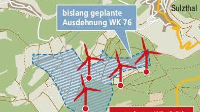 Er geht jedoch davon aus, dass die Sache Hand und Fuß hat, wenn der Betreiber rund 200 000 Euro für Gutachten investiert. Den so genannten Disko-Effekt mit Schattenwurf auf das Dorf befürchtet Weingart nicht. Für die Zufahrten und Montageflächen rechnet er mit etwa 1,6 Hektar (= drei Fußballfelder) Fläche, die der Gemeindewald opfern müsse.