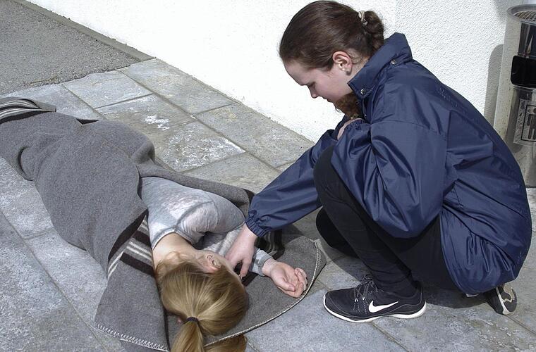 Während die jüngsten Teilnehmer Schürfwunden und Kopf-Platzwunden zu versorgen hatten, kamen den älteren Gruppen die fachgerechte Behandlung von Bewusstlosen, Schock-Opfern und stark blutenden Wunden zu. Dafür braucht es einschlägiges Wissen, das sich in der Erste-Hilfe-Theorie erlernen lässt und in einem Fragebogen seinen Niederschlag findet.