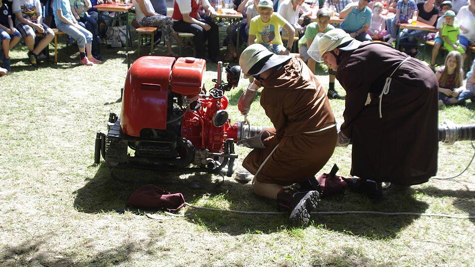 Unter den Augen von Peter Sell und Thomas Eyrich gingen die Obererthaler Crew, die Senioren aus Fuchsstadt mit historischen Uniformen, die "Beach Boys" aus Langendorf in Hawaii-Shirts, die Fuchsstädter Youngsters, die in Mönchskutten gekleideten "Salzbrüder" aus Diebach und das Quintett der Schwärzelbacher Wehr an den Start. Erfahrung und langes Training behielten die Oberhand. Die "Oldies" aus Fuchsstadt, die eine "Fabelzeit" vorlegten, bestätigten ihr Können im zweiten Durchgang und wurden Sieger.
