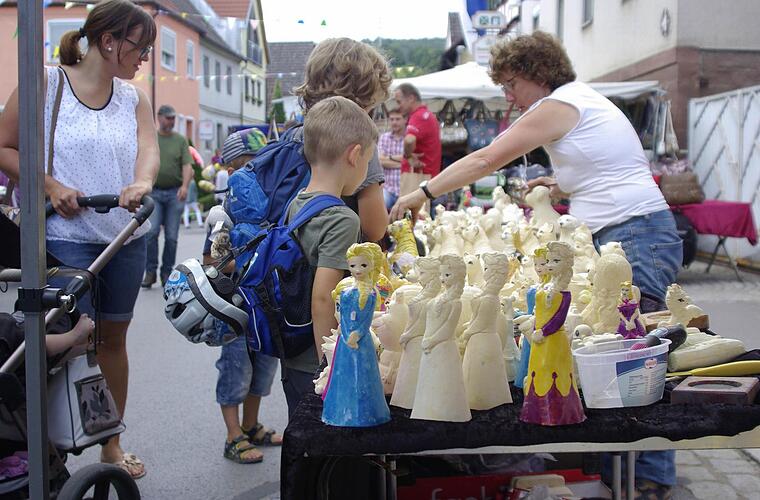 Mit Figuren zum Bemalen lockte Lydia Baier aus dem hessischen Poppenhausen in der Rhön die jüngsten Besucher an. Wer Interesse hatte, dem zeigte sie, wie Märchen- und Fantasiefiguren farbig gestaltet werden. Auch die Exemplare stellt die Rhönerin selbst her. Wie und aus welchem Material sie bestehen verriet sie allerdings nicht.