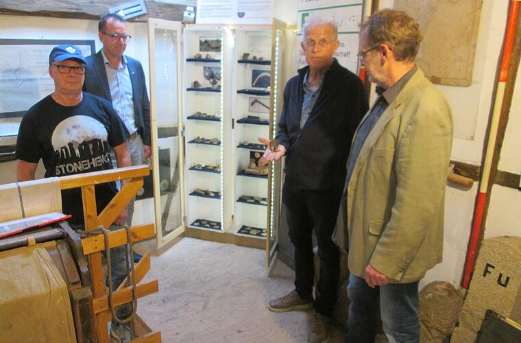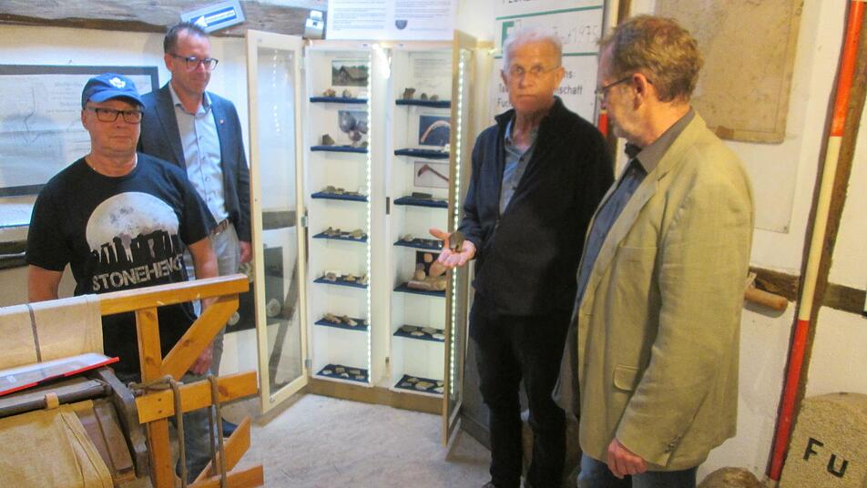 "Fuchsstadt kann sich glücklich schätzen über den Fund", betonte Heimatpfleger Roland Heinlein, der gemeinsam mit Mitgliedern des Archäologischen Arbeitskreises (AKK) "Mittlere Saale", Bernd Marquardt und Wolfgang Glaser, die Relikte in einer Vitrine der Öffentlichkeit vorstellte. Ein früherer Zeitpunkt war der Pandemie wegen nicht möglich.
