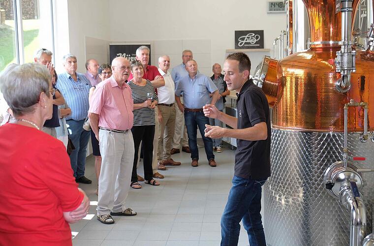 Die neue Halle der Genussbrennerei Lutz ist schon seit dem Vorjahr fertig gebaut. Jetzt wurde sie offiziell eröffnet. Darin befindet sich ein wahres Glanzstück, nämlich die ebenfalls neue Brennanlage für die hochprozentigen edlen Tropfen wie zum Beispiel das Windheimer Nüsslein. Mit Recht kann Andreas Lutz auf seine "Verschlussbrennerei" stolz sein. Es ist nicht nur technisch ein bewundernswertes Meisterwerk entstanden, sondern auch ein optischer Augenschmeichler. Hier verbinden sich Design und Geschmack.