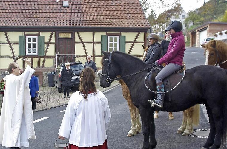 Nicht nur die Tiere, auch die landwirtschaftlichen Geräte hat Pfarrer Thomas Eschenbach traditionell zum Fest des heiligen Leonhard gesegnet.