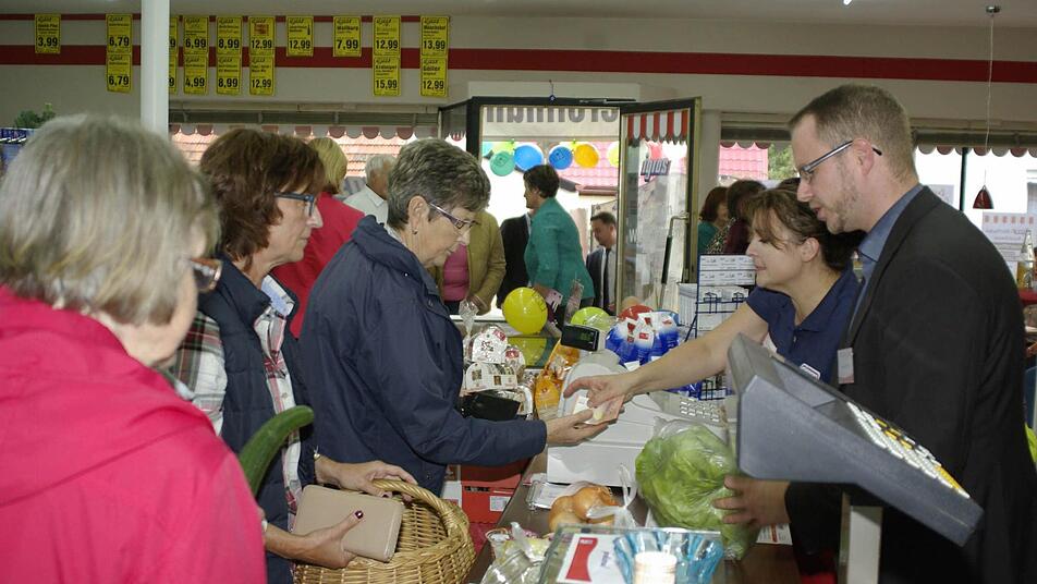 Die Neueröffnung eines Lebensmittelgeschäftes in Aura ist ein kleines Ereignis. Lange haben viele Bürger auf diesen Moment gewartet. Am ersten Tag kamen daher auch viele neugierige Kunden in den Laden.