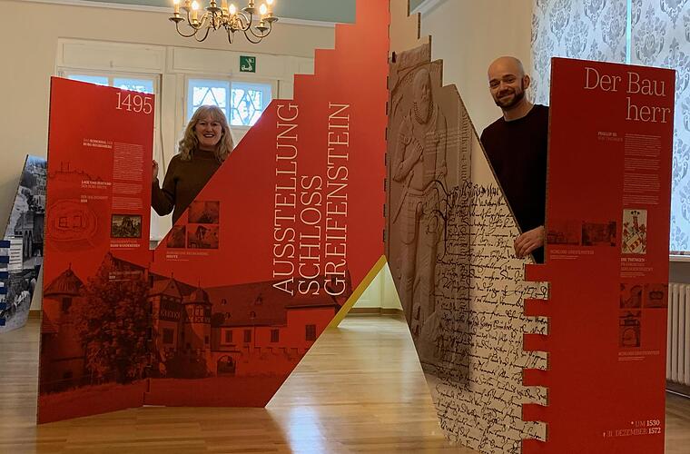 "Da waren wir allerdings schon sehr weit mit unserer Arbeit, hatten viel Material zusammen getragen", berichtet Joa. Und weil das Ergebnis dieser Recherchen auch ohne Jubiläum spannend ist - schließlich liegt Schloss Greifenstein in Bonnland und das ist für Normalsterbliche nur selten zugänglich - haben sie beschlossen, eine Ausstellung zu kreieren. Die wurde vom Landkreis gefördert. Das Design, sehr modern, farbig und aus Recyclingmaterial, hat die Würzburger Agentur Eydos übernommen.