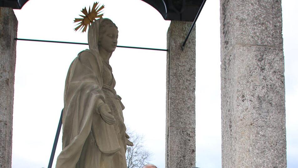 Dreschers Übersetzung der lateinischen Inschrift lautet: "Abbild der Seligen Jungfrau und Mutter Maria, die in ihrem Schoße das Geheimnis des allerheiligsten fleischgewordenen Wortes trägt, welches in Prager Neustadt in Karlow bei den Regularkanonikern vom Lateran des Heiligen Augustinus zur Verehrung für die frommen Gläubigen aufbewahrt wird. Zu Ehren derselben ist es aufgestellt worden von Herrn Georg Vay, aus Hammelburg stammenden allerdurchlauchtesten Kapitän der Republik Venedig, im Jahre 1711." Der Latein-Lehrer und Theologe ist sich sicher: "Die Inschrift ist eindeutig", sagt er, aber auch die Darstellung und der Strahlenkranz um den Bauch weise eindeutig auf eine schwangere Maria hin - passend zur Geburt Christi an Weihnachten. Und der Blick ins Internet bestätigt: Im 17. Jahrhundert entstand in der Stiftskirche im Karlshof in der Prager Neustadt das Gnadenbild einer schwangeren Madonna.