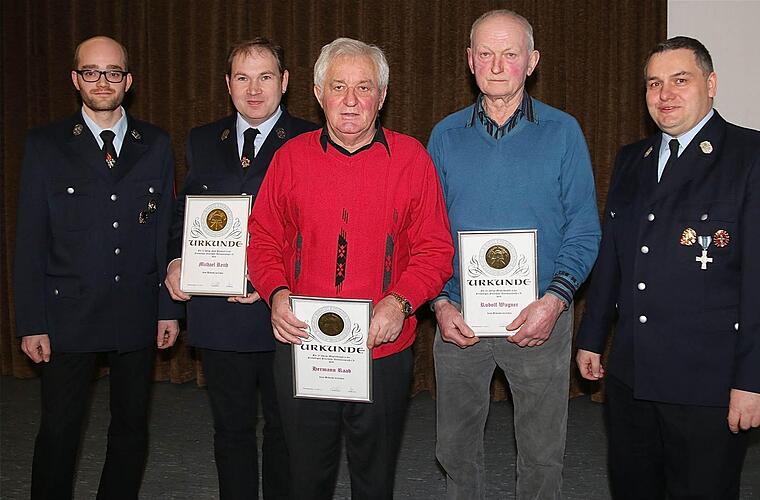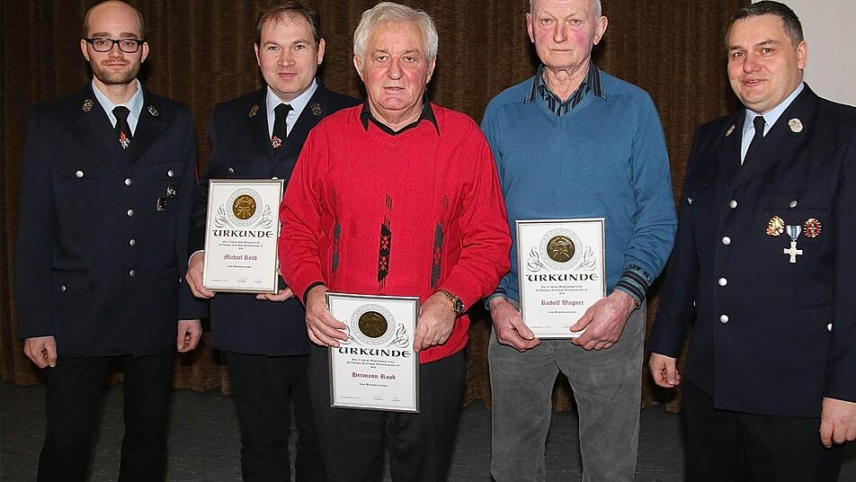"Es ist die solidarische Gemeinsamkeit in unserem Dorf, die mich so lange bei der Feuerwehr hält", sagte Rudolf Wagner, als ihm Joa die Dankesurkunde für 60-jährige Mitgliedstreue überreichte. Und Hermann Raab, der für seine 50 Jahre im Feuerwehrverein geehrt wurde, nickte ihm freudig zu. Auf 25 Jahre brachte es Michael Reith, der immer noch seinen aktiven Ehrendienst in der Wehr Wartmannsroth verrichtet. Zurzeit zähle der Verein 113 Mitglieder, bestätigte der Kommandant.
