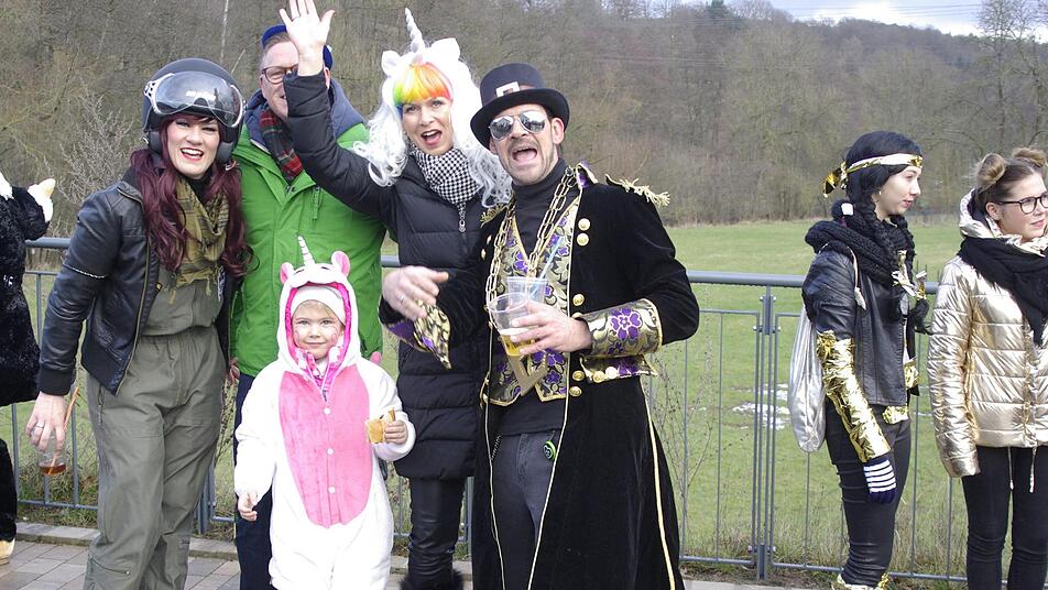Auch heuer waren nur heimische Gruppen - von einer auswärtigen Kapelle abgesehen, die den Musikverein Aura unterstützte - zugelassen. Rund 250 Akteure und 140 Helfer sorgten für ausgelassene Stimmung, Fröhlichkeit und Bewunderung beim Rosenmontagszug. Die Wehren aus Aura, Wittershausen, Wirmsthal und Ramsthal, zwei Sanitäts-Teams und die Polizei-Inspektion Hammelburg sorgten für die Sicherheit. Nach dem Zug ging das närrische Treiben in der Festhalle weiter.