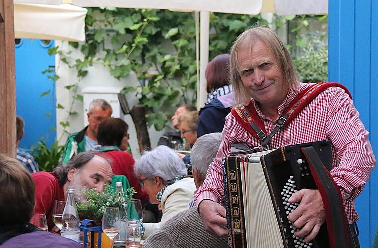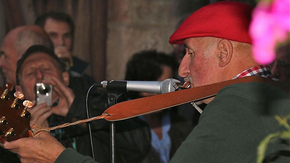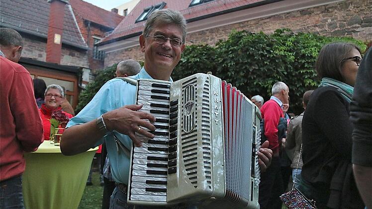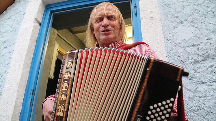 Nicht nur die Besucher des Höflesfestes, sondern auch die Musikanten wanderten im Stundenzyklus durch die zehn teilnehmenden Höfe. Neu unter den Musikanten war "Quetschenmännle" Gerhard Werthmann, der singende Akkordeonspieler aus Rettersbach (bei Karlstadt). Zu den Hammelburger Barden zählen Konrad Albers und "George" Mathias Uebel.
