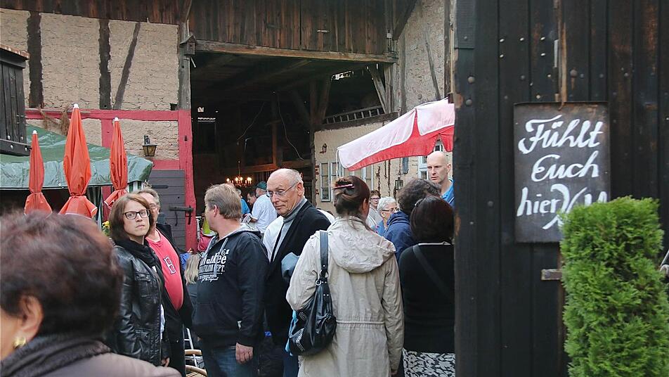 "Ich habe großes Interesse, das aus dem Jahr 1590 stammende Haus zu erhalten und lasse meine Besucher gerne in meinen Hof Einblick nehmen", hat sich die Besitzerin heuer zu ihrem Entschluss durchgerungen. "Für mich ist die aktive Teilnahme am Höflesfest absolutes Neuland", sagt sie und ist froh über die begeisterten Rückmeldungen ihrer Gäste. Die haben auf Bänken und Stühlen im Innenhof und unter dem Scheunendach bei Wildschwein-Bratwurst und Altstadtbier gemütlich Platz genommen.