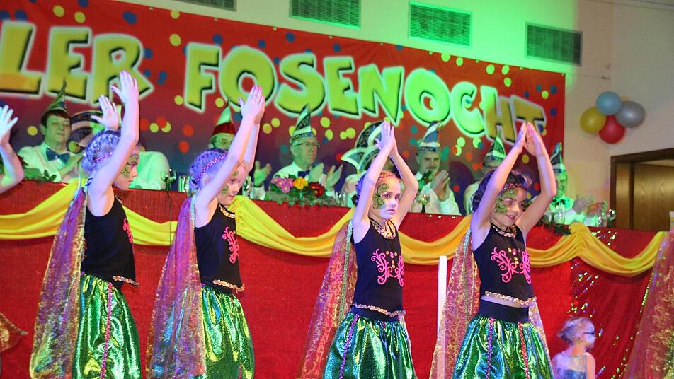 Die fünfte Garde sind die "Tanzpuppen", die sich heuer das Thema Dschungelbuch ausgesucht hatten: In bunten Kostümen wirbelten sie über die Bühne, einstudiert hatten das kreative Programm Nathalie Michele, Lena Hesselbach und Julia Hesselbach.