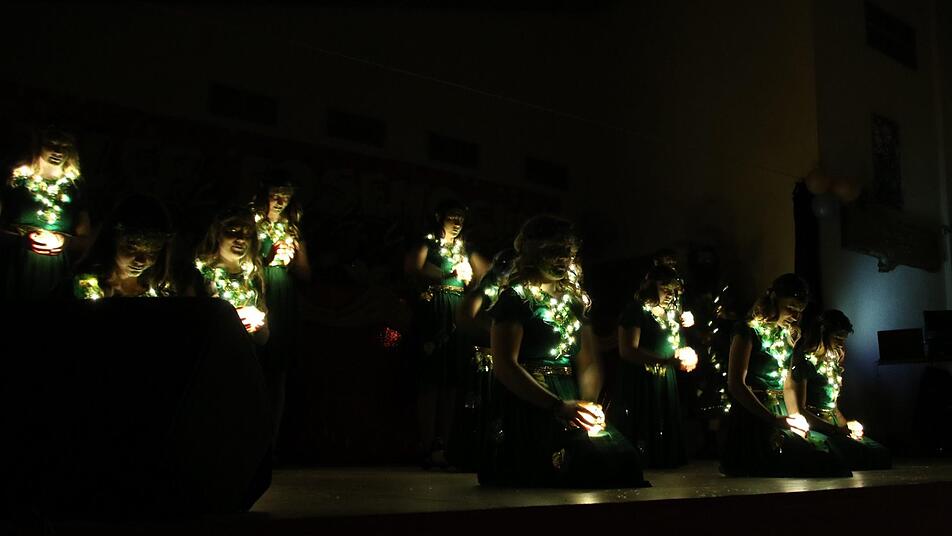 "Die Schritte sind ganz schön kompliziert, das war manchmal richtig frustrierend", berichtet Laura Müller von den Proben. Umso erleichterter ist sie, dass die vier Auftritte in Altbessingen und Sulzthal jetzt gut geklappt haben: Beim Step-Tanz müssen alle genau im Takt sein, jeder Fehler ist zu hören. Besonders kreativ war auch die Ausstattung: Alle 13 Akteure waren aufwändig geschminkt, die Tänzerinnen hatten Elfen-Kostüme, LED-Kugeln und -Schmuck sorgten für eine mystische Atmosphäre. "Wir hätten auch noch ein paar Auftritte mehr gemacht, aber ich denke, es sind alle froh, dass sie jetzt erst einmal wieder den Sonntag frei haben", fasst Laura Müller die Stimmung nach der Abschluss-Vorstellung in Sulzthal zusammen. Der Jubel der Zuschauer und die Zugabe-Rufe sind Ansporn fürs kommende Jahr: "Im Herbst geht's dann ja schon wieder weiter", sagt Trainerin Laura Müller.