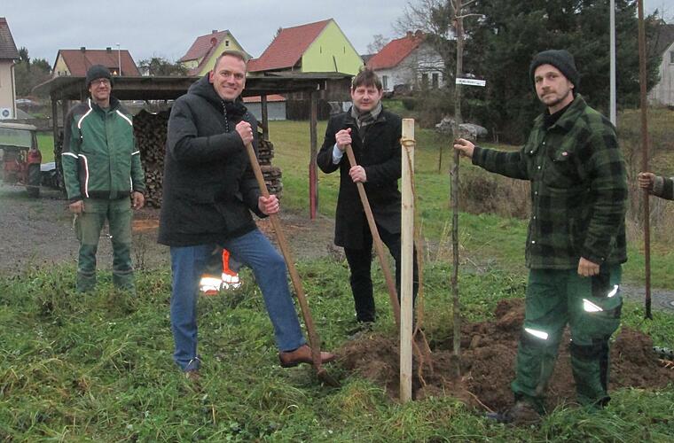 Stellvertretend für alle Kommunen der Allianz "Fränkisches Saaletal" fanden drei neue Obstbäume ihren Standort in der Nähe der Wasser- und Biosphären-Kindertagesstätte in Thulba. Insgesamt rund 100 Obstbäume will die Allianz in den neun Gemeinden pflanzen, die ihr angehören. Die Idee, die schrittweise realisiert wird, kam in einem Seminar im Herbst 2020 auf, so Allianz-Manager Holger Becker. Er verwies auf die Bedeutung der Streuobstwiesen im Saaletal, die nicht nur als CO2-Speicher dienen, sondern auch rund 5000 Tierarten einen Lebensraum bieten. Becker hoffte auf eine optimierte Vermarktung des Potenzials und wünschte sich eine frühe Einbindung der Kinder.