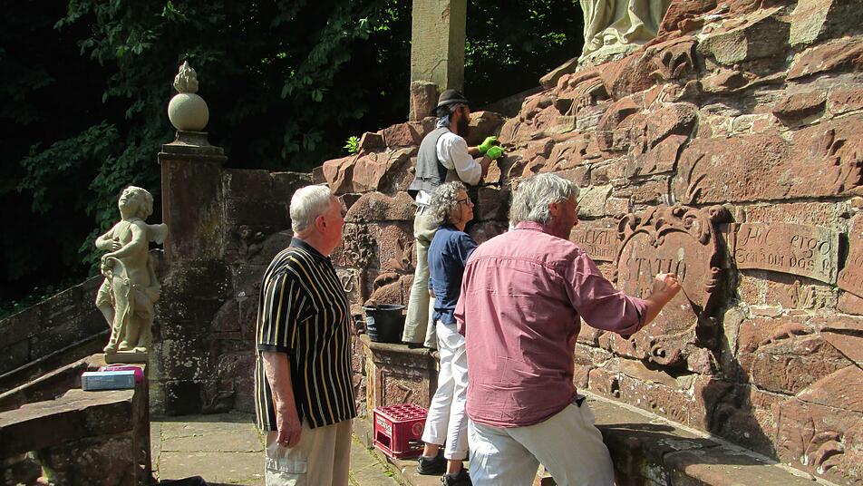 Für Reiner Baden ist es eine Herzenssache, deren Finanzierung er schultern muss. Zuschüsse für das "Musterprojekt für Sanierung und Erhaltung" kommen vom Landesamt für Denkmalpflege und vom Bezirk Unterfranken. "Doch das alleine reicht nicht aus", stellt Baden fest, der sich nicht zu schade ist, um ein Scherflein zu bitten. Um die fälligen Gesamtkosten in Höhe von 18 000 Euro für die 12. Station decken zu können, sammelte er die Hälfte dieser Summe ein.