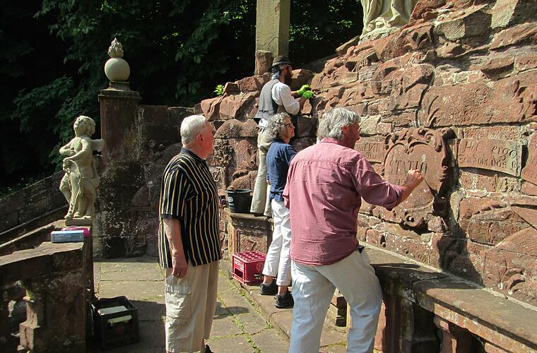 Der - vorläufig - letzte Akt im Rahmen der Wartung des Kapellenkreuzwegs am Kloster Altstadt ist abgeschlossen, Restaurator Clemens Muth und seine Mitarbeiter zeigen sich zufrieden. Im Mittelpunkt der Restaurierungsarbeiten stand diesmal die 12. Station, "Jesus stirbt am Kreuz", die Kreuzigungsgruppe unterhalb von Schloss Saaleck.