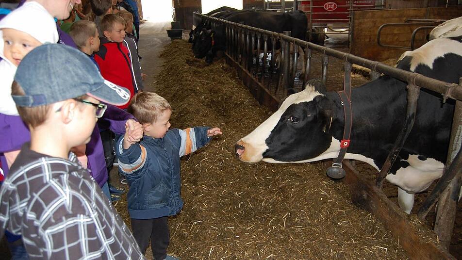 "Wichtig ist für uns, dass die Kinder sehen, wo die Milch herkommt und welche Arbeit dahinter steckt, bis sie als Lebensmittel auf den Tisch kommt", erklärte die Bäuerin. Früher hat sie im Kindergarten gearbeitet, und so verstand sie es, das Interesse der Kinder zu wecken. Die Mädchen und Jungen lauschten gebannt und stellten dann ihre Fragen.