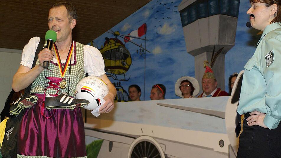Eine "Ulknudel"-Show gab die "Zollkontrolle" zum Besten. Zöllnerin Karin Kaiser wunderte sich nicht schlecht, was so alles im heimischen Flughafen eintrudelte. Queen Elizabeth, deren " dear son" über der Ruine Aura mit dem Fallschirm absprang und dabei schwarz-weiße Schottland-Rinder sichtete, Bürgermeister und Gemeinderäte, die aus Dubai landeten wo sie Sand für die Erneuerung des Dorfplatzes bestellten oder der Dirndl-gekleidete und frisch gebackene Weltmeister Thomas Müller, der allerdings nicht als Stürmer beim SV Aura eintritt.