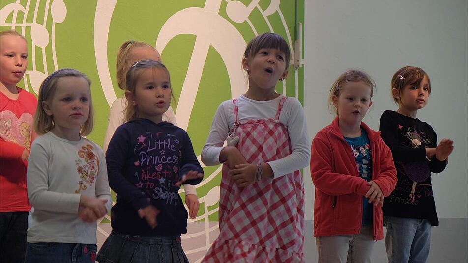 Lied von den Gummibärchen Der Einfallsreichtum der Wes tolinos und die Freude am Gesang begeisterten das Publikum. Besonders als das Lied von den Gummibärchen erklang und die Kinder sich die bunten Bärchen auf die Stirn klebten, war der Spaß der Mädchen und Jungen gut zu erkennen. Da hatte Chorleiterin Miriam Bogner ganze Arbeit geleistet. Sie hatte die Kinder mit kreativen Einfällen motiviert, was den Gesangsvortrag recht lebendig werden ließ. Da klatschten auch die Zuhörer gerne mit. Die Westolinos teilen sich in zwei Altersgruppen. Als Gastchor sangen die Singmäuse aus Bad Bocklet unter der Leitung von Thomas Betzer.