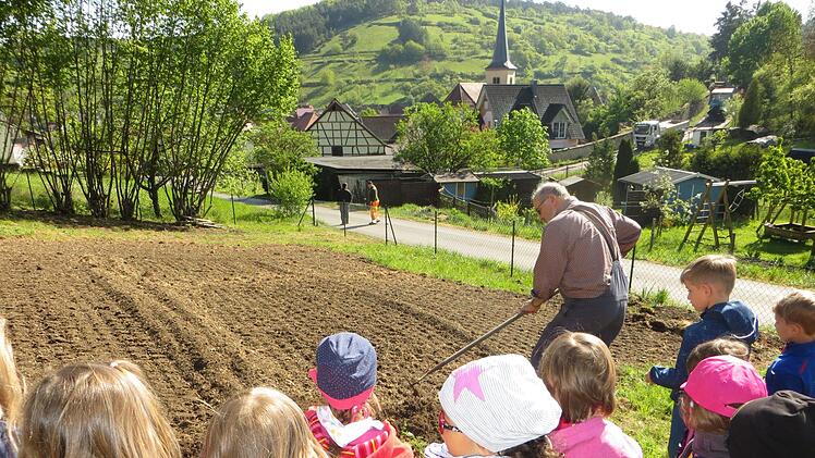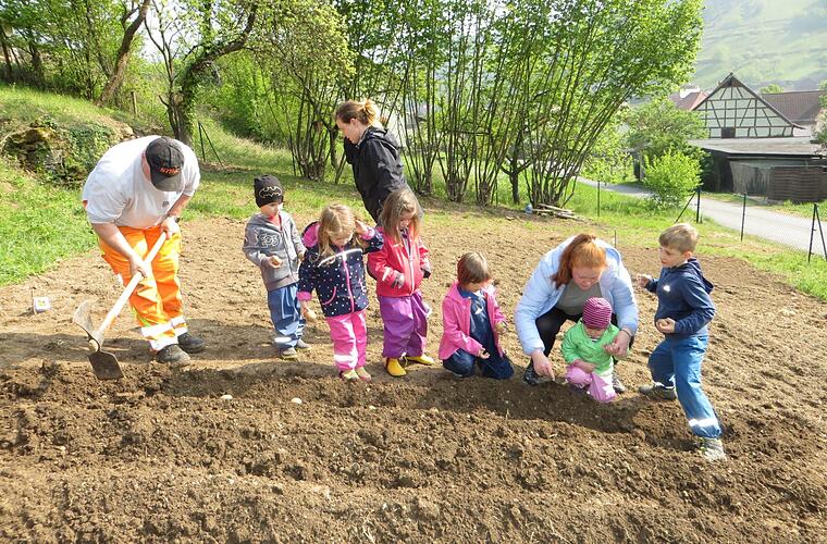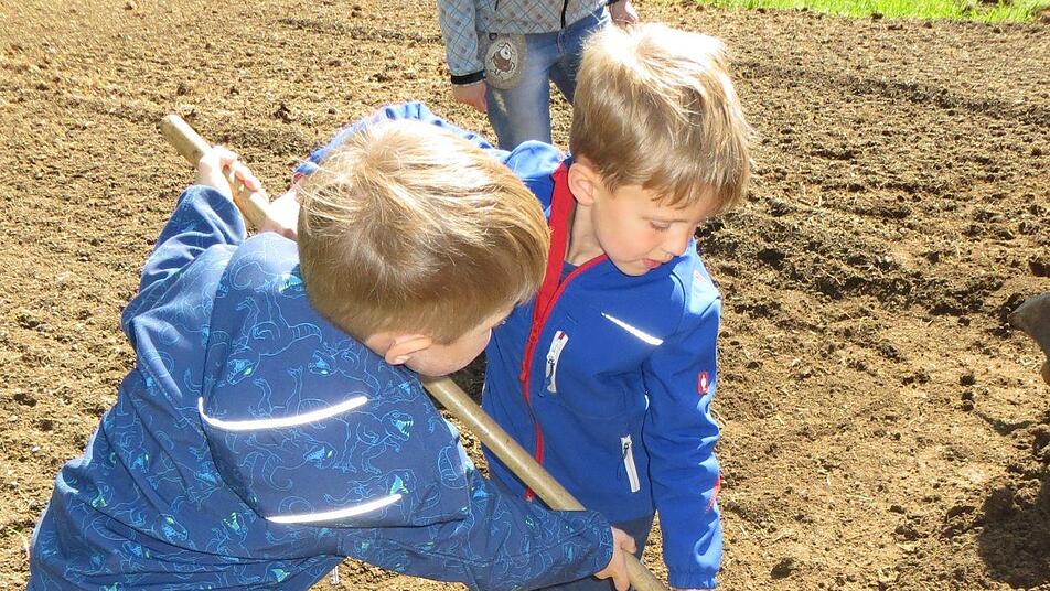 Als erste Aktion legten die Kinder der Mäusegruppe Ende April gemeinsam mit Bürgermeister August Weingart und mit Unterstützung der Gemeindearbeiter und zweier Mütter Kartoffeln in den Boden. Damit die heimische Insektenwelt genug Nahrung findet, säte die Kindergruppe eine Blumenwiese und Sonnenblumen für Bienen und andere Nützlinge. red
