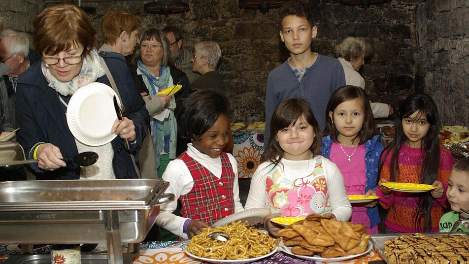 Die Asylbewerber richteten ihrerseits ein Büffet exotischer Speisen her, die sich die Hammelburger nicht entgehen lassen wollten. Die Initiatoren sorgten für Musik und Stimmung im ehrwürdigen Rathauskeller, der für diese Veranstaltung erfreulicherweise zur Verfügung stand.