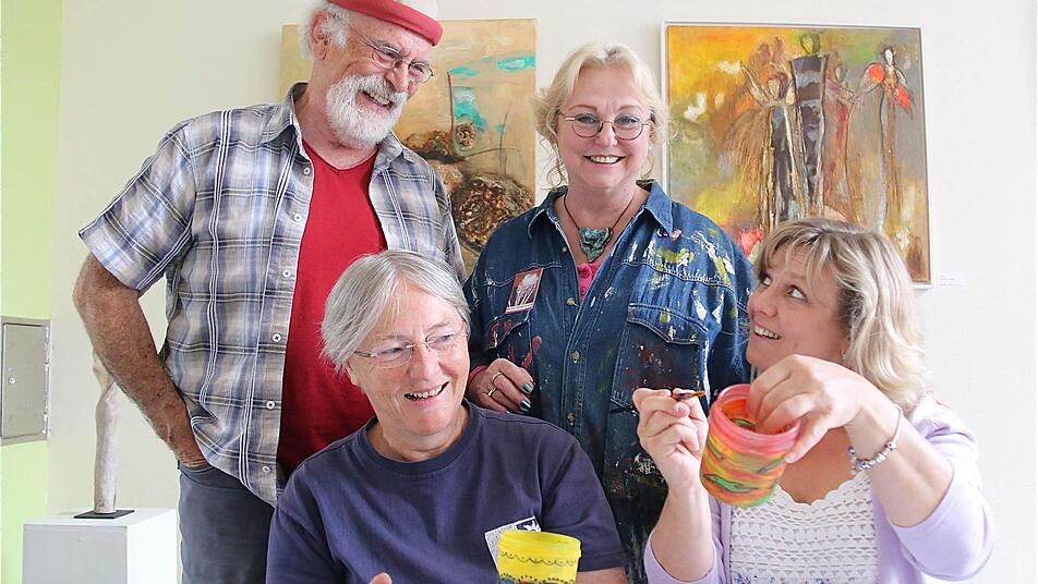 Einen spontanen Zugang zur Kunst können bei Malerin Marthy Steller-Vrolyk bereits Kinder erleben. Sie greifen zum Farbpinsel und malen Marmeladengläser an, die für Teelichter genutzt werden können.