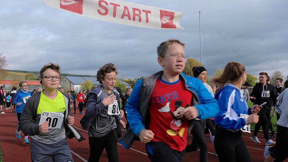 Rund die Hälfte der Schüler vom Hammelburger Frobenius-Gymnasium (FGH) trat am Freitag zum traditionellen Minimarathon an. Der erste dieser jährlichen Läufe über die fünf Kilometer lange Strecke fand vor 26 Jahren statt. Weil aber zweimal keine Läufe stattfanden, war es heuer der 24. Minimarathon. Klar, dass im Jubiläumsjahr (350 Jahre FGH) dieses Event nicht ausfallen durfte: Gekoppelt war der Minimarathon nämlich passend zur Jubiläumszahl mit einer 350-Eurocent-Spende pro Läufer zugunsten des Kinderhilfswerkes Unicef, für die Sponsoren (in der Regel die Eltern) aufkamen. Annähernd 1000 Euro kamen so an Spendensumme zusammen.