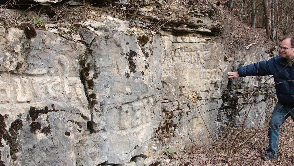 Selbst Altbürgermeister Peter Hart wusste lange nicht, wer die Schrift in den ehemaligen Steinbruch gemeißelt hatte. "Ich bin irgendwann drauf hingewiesen worden." Die Inschrift auf Gemeindegrund fand er von Anfang an gut. Am Herzen lagen Hart schon immer die Kohlenberg-Kapelle und die Kreuzwegstationen. Als ein herabfallender Ast eine der Stationen beschädigte, bat er den engagierten Fuchsstädter Handwerker Georg Stöth um Hilfe.