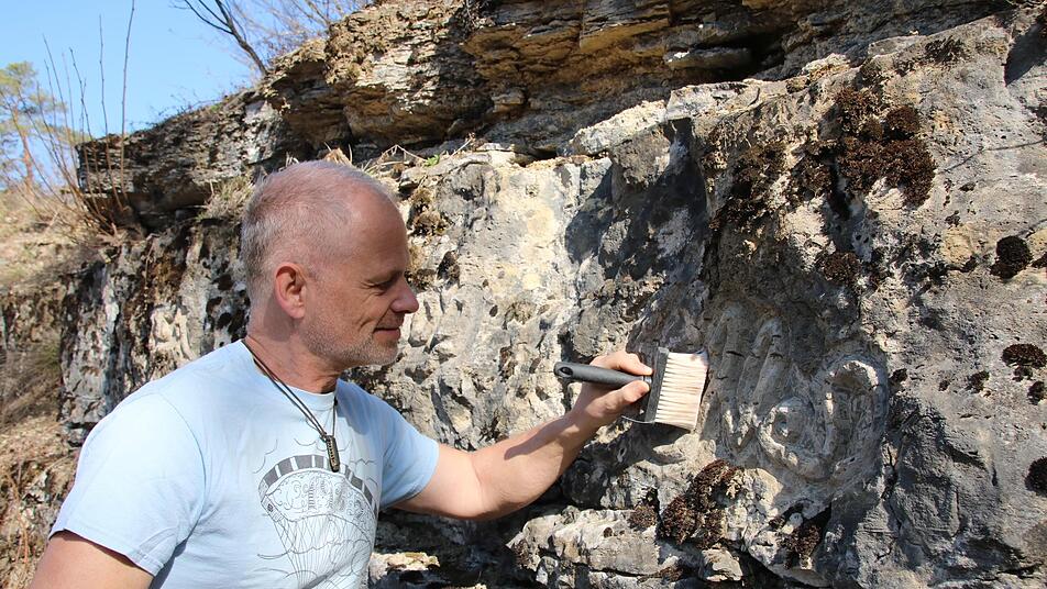 "Wenn jemand kam, habe ich mich versteckt", erzählt Wagner vom Anbringen der Inschrift. Der 53-jährige Familienvater bezeichnet sich selbst als "spirituellen Menschen". Die Anregung für das Zitat habe er aus einem der Bücher des Theologen Norman Vincent Peale. Bei Spaziergängen mit dem Hund habe er über mehrere Wochen hinweg täglich rund eine Stunde am Schriftzug gearbeitet. "Dann waren die Meißel stumpf." Den Fuchsstädter reizte die Arbeit mit dem unvergänglichen Muschelkalk.
