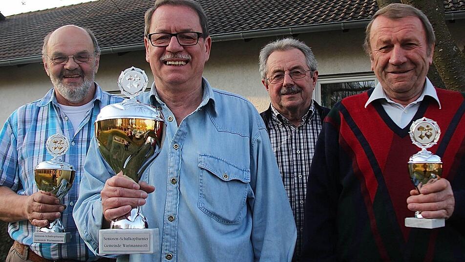Ihm folgte auf dem zweiten Platz Günter Morshäuser (270), gefolgt von Karl Reith (170), beide aus Wartmannsroth. Die Tagessieger erhalten eine kleine Anerkennung und eine Prämie aus der Startgeldsumme. Die großen Pokale gingen an die Turnier-Gesamtsieger.