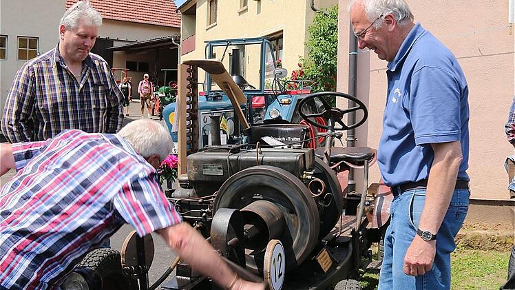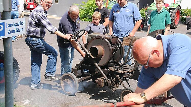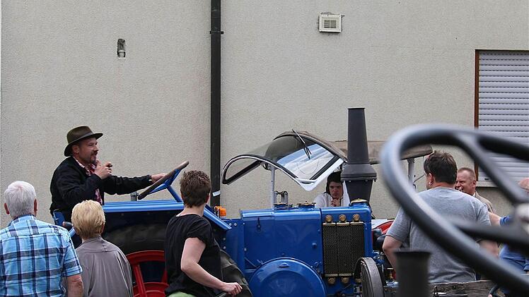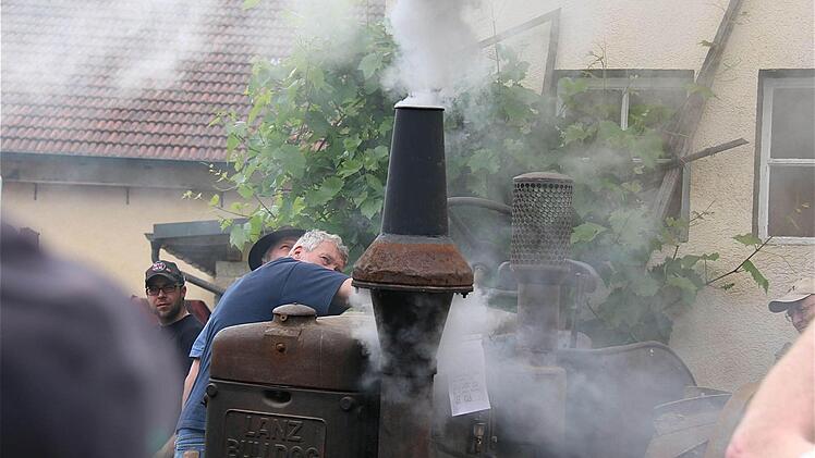 Mit eigener Kraft hat sich auch Hans Dünningers Lanz-Bulldog von Wittershausen zum Treffen bewegt. Das unverwüstliche Urgestein aus massivem Stahlblech beeindruckt mit lautem "Plopp-plopp-plopp". Dieser unüberhörbare Infraschall geht dem unbedarften Betrachter durch die Magengrube und trifft den begeisterten Bulldogfan mitten ins Herz. "Das ist Musik wie vom feinsten Orchester", freut sich nicht nur Dünninger. Während sich die Maltesergasse immer mehr mit solchen historischen Traktoren füllt, hat sich in der bergan gelegenen Vereinshalle der Bulldogfreunde schon Feststimmung ausgebreitet.