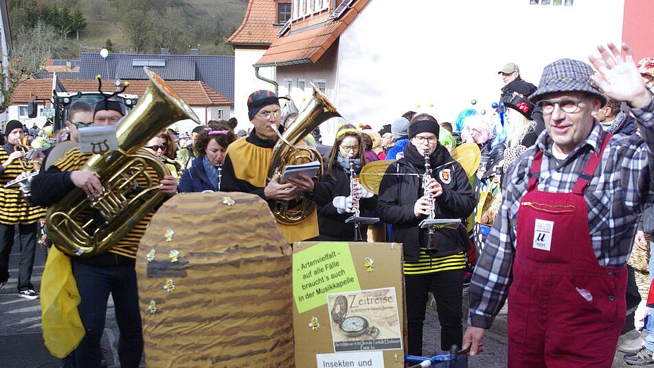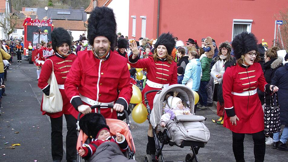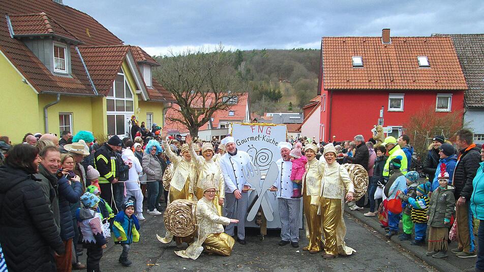 Einen mit viel Fantasie gestalteten Faschingszug und dazu ein zahlreich erschienenes Publikum, das in die vierstelligen Zahlen reichte, bot das kleine Dorf am Rande der Rhön. Mit 21 Fahrzeugen und Fußgruppen sowie zwei Kapellen ausgestattet lockte das aufwendige Spektakel gut gelaunte Zuschauer aus Aura und der weiteren Umgebung.