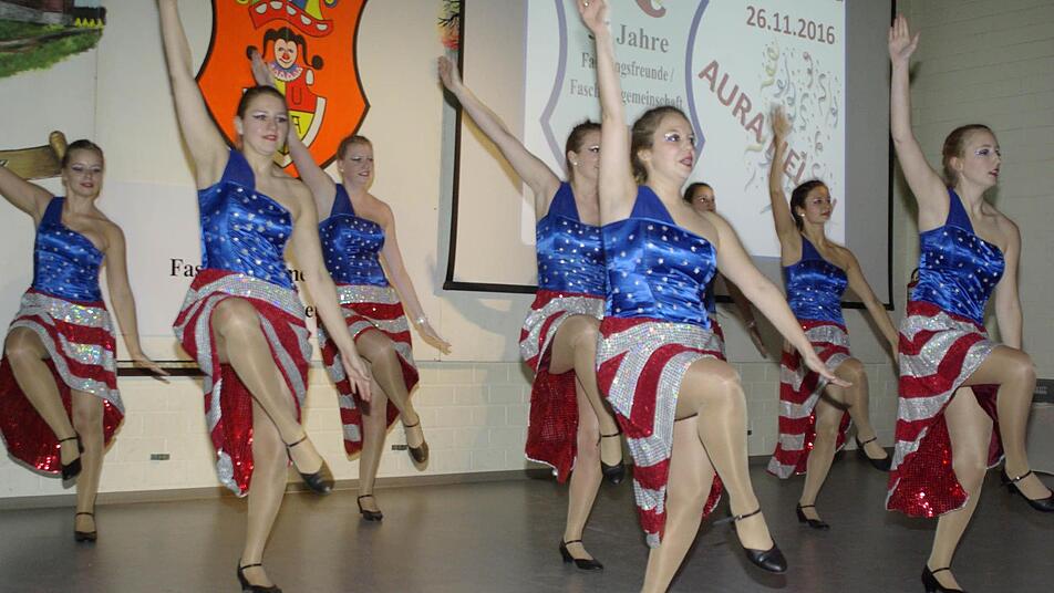 Mit einem Jubiläumsabend starteten die Auraer Narren in die Session. Verdiente Aktive wurden ausgezeichnet.