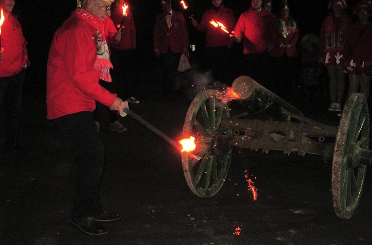 Drei lange Jahre mussten die Faschings-Freunde warten, bis sie endlich wieder vor das Rathaus ziehen konnten. Der Abend war schon hereingebrochen, als es die lärmenden Scharen mit Trommelgetöse von der Schulstraße vor den Amtssitz zog, wo sich Bürgermeister Thomas Hack und die Räte verbarrikadiert hatten. Aus sicherer Entfernung, im ersten Stock weilend, mit einem Graben vor dem Eingang zum Gebäude - die Verteidiger taten dies als Leitungsverlegung ab - harrten sie dem Aufmarsch der bunten Truppe. Nach einigen Schüssen aus der Ofenrohr-Haubitze entspann sich zunächst ein Streitgespräch zwischen dem Noch-Machthaber und den Anführern der Narre, den Sitzungspräsidenten Philipp und Marcel Kaiser, die ihre wahren Absichten verschleierten. "Rathaussturm? Wer erzählt sowas", kam es aus dem ehemaligen Schulhof. Doch Hack ließ sich nicht täuschen: "Ihr wollt den Rathausschlüssel und die Kasse. Los, schießt doch jetzt". Zudem bezichtigte er die Rebellen der Raserei auf staubigen Straßen, weshalb er, der Bürgermeister, vier Wochen bei Günther Frank die Fenster und den Anwohnern die Autos putzen musste. Dem Versprechen. dass sie es nicht waren, fügten die Kaiserlichen bei, Hack hätte doch den Gemeindebauhof einsetzten können. Doch Bauhof-Chef Reinhold Schaupp und Prinzessin Petra sind das Prinzenpaar. Ihn als Fensterputzer und sie für den künftigen Winterdienst und Schank-Maid für das Naturbad einzusetzen, geht schon gar nicht.